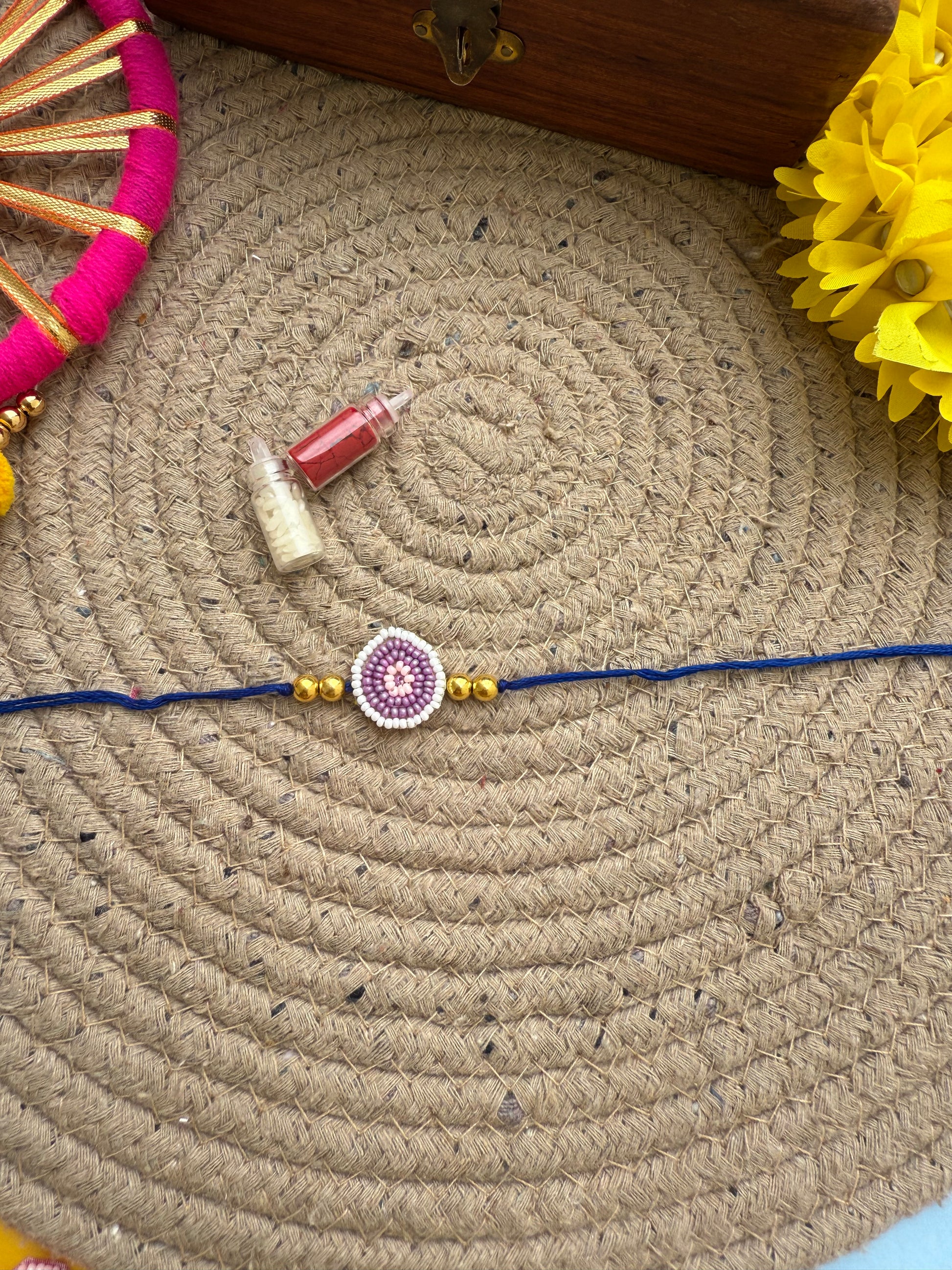 A delicate Rakhi crafted with minimal beads work for your brother’s wrist, celebrating love with simplicity. Featuring tiny handcrafted beads in soft tones, aligned on a sturdy yet elegant thread, this Rakhi blends tradition with a modern aesthetic, making it perfect for brothers who appreciate understated style.